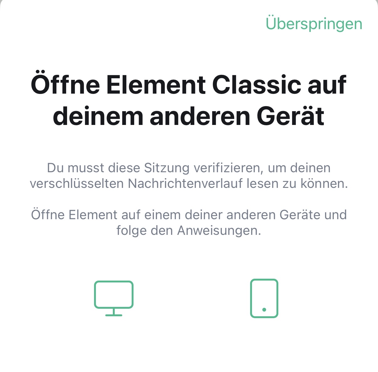 Anschließend erfolgt die Abfrage zur Verifikation der Sitzung und die Chats werden angezeigt.