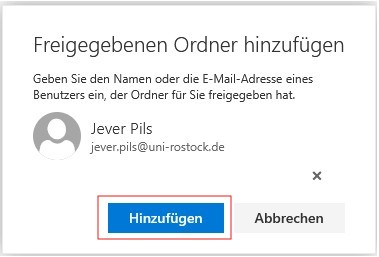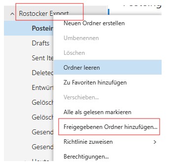 1. Rechtsklick auf das eigene/persönliche Postfach > Freigegebenen Ordner hinzufügen